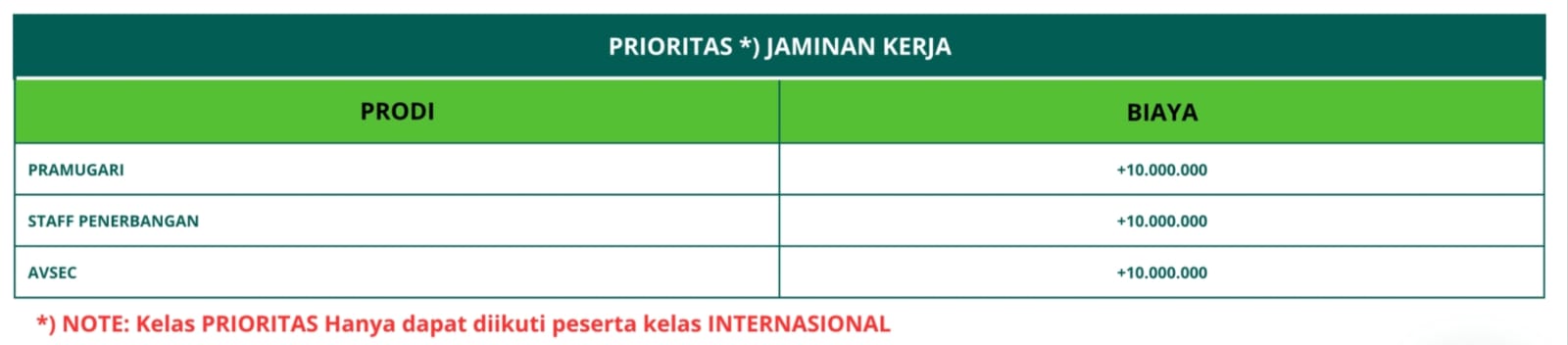 • Tidak Pernah patah tulang (khusus jurusan pramugari dan keamanan penerbangan